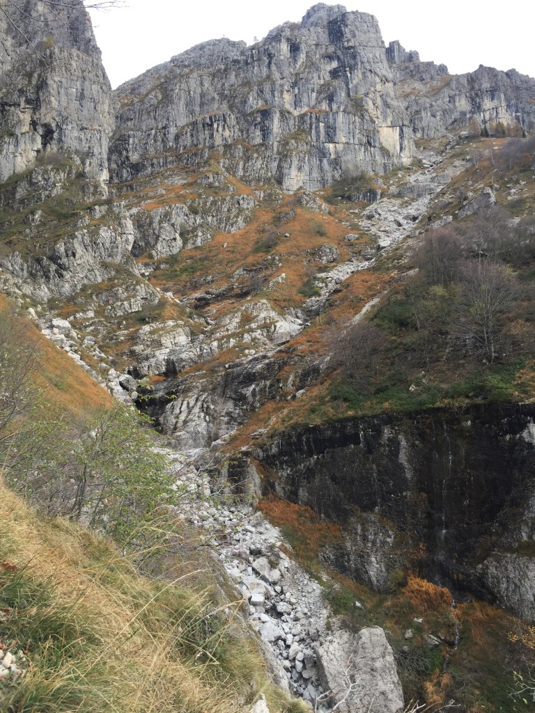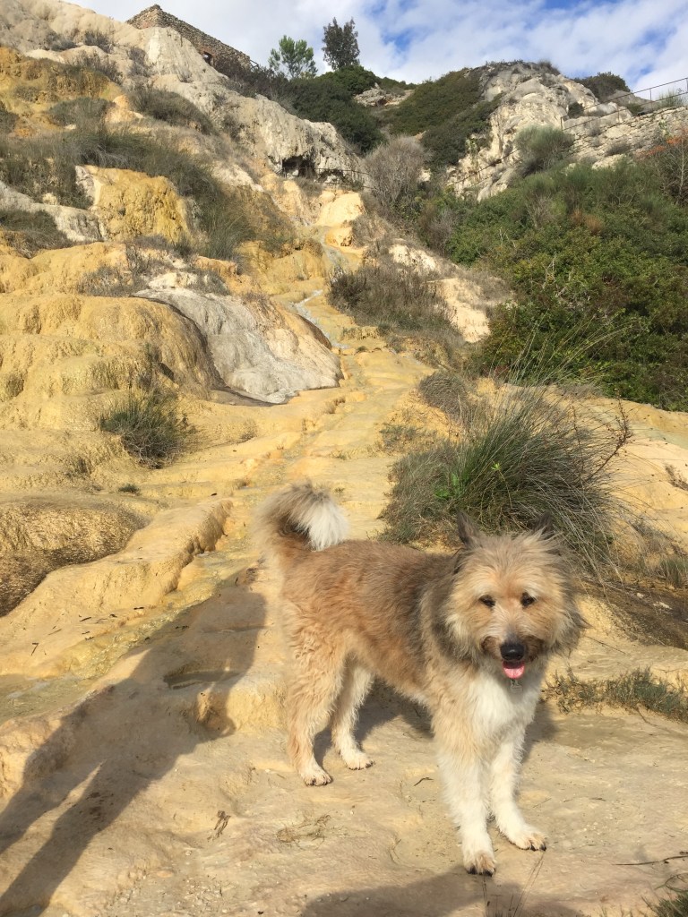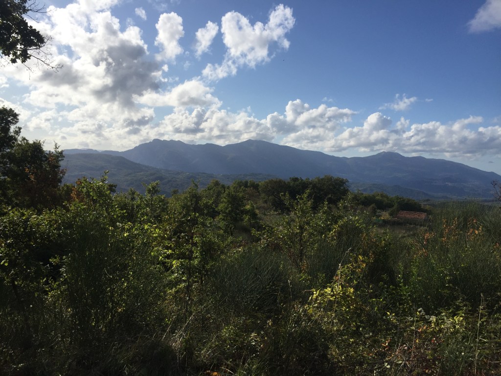 Am nächsten Tag folgen wir zu Fuß einem Schild, Parc Geologico Monte Pruno steht darauf. An sich nicht so spektakulär, im Prinzip sieht man alte Steinmauern auf einer Hochebene, aber der Weg dahin, die Aussicht und die Pflanzenwelt sind wunderschön.