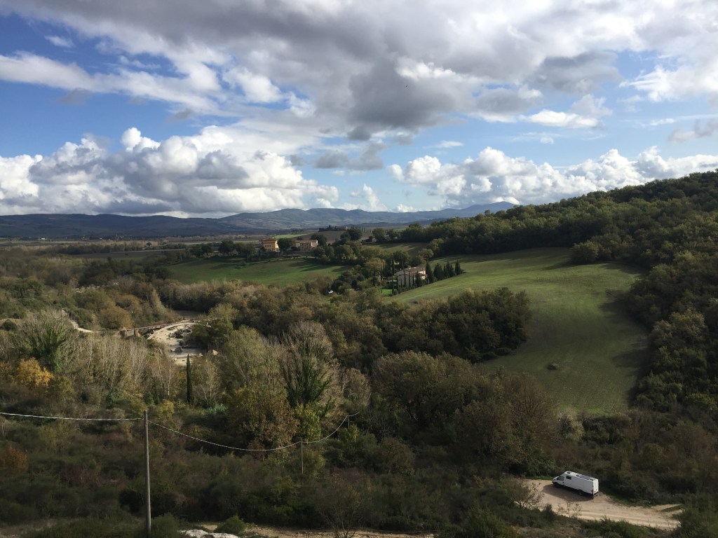 13.11.2019: Wir erhoffen uns nach den Erfahrungen der letzten Tage Ruhe und Beschaulichkeit im Bergidyll des Nationalparks Cilento. Während der Fahrt entdeckt Ina in den Tiefen des Netzes , Glückes Geschick, ein verlassenes Bergdorf. Dort angekommen parken wir auf dem Dorfplatz. Einheimische ältere Herrschaften aus dem in wenigen hundert Meter entfernten Nachbarort Roscigno begrüßen uns und signalisieren, dass übernachten unproblematisch sein sollte. Einer von ihnen spricht ein bisschen französisch, sodass wir uns verstehen können, alle anderen sprechen nur italienisch. Das bremst sie aber keineswegs, längere Plaudereien mit uns anzuzetteln. Da hilft nur lächeln und nicken.