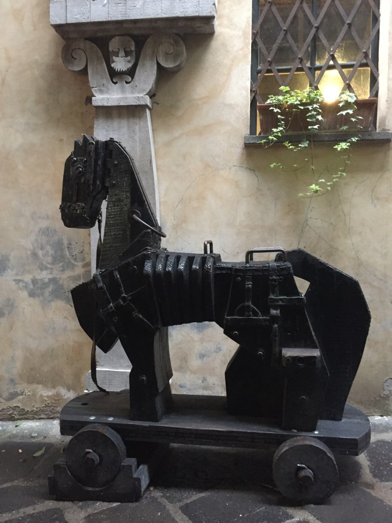 Giuseppe handhabt das genauso. Er betreut das nun als Freilichtmuseum dienliche Dorf, raucht Pfeife und erzählt uns detailreiche Geschichten, von denen wir kein Wort verstehen. Er scheint sich aber über unsere Anwesenheit zu freuen, außerdem sieht er mit seinen Lederstiefeln, weißem Bart, Hut und Pfeife verdammt cool aus.
